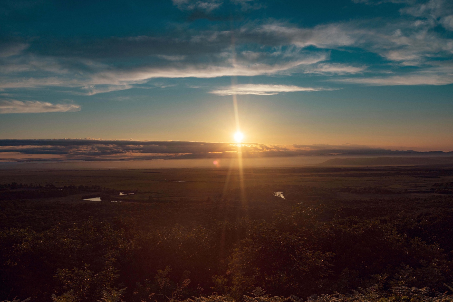 一日の終わり、沈む太陽が大地と蛇行を繰り返す川を照らしていました。悠久の時を生きる釧路湿原は近年その範囲が少しずつ減少しているようです。古来より多くの恵みを自然から受け取ってきたぼくたちは自然や子供たちの為にこの美しい風景を守らなくてはいけません。ここに立った未来の誰かがまたぼくと同じようにタイムスリップしてくれることを願っています。